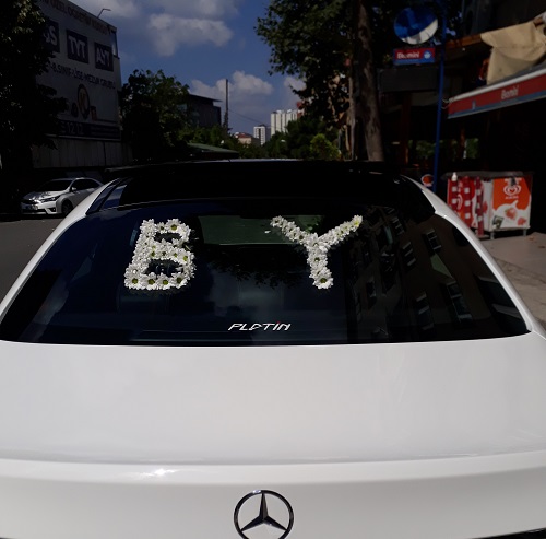 Beyaz Çiçeklerden oluşan <Gelin Arabası Süsleme> si,Beyaz Papatya,Kazablanka,Lisyantus Çiçekleri Kullanılarak hazırlanmıştır. Ön ve Araka Olmak üzere 2 adet çiçek düzenlemesi yapılmıştır.yaklaşık hazırlama süresi 45 dakikadır.istenirse arka cama <papatya Çiçekleri>ile isim yazılabilir.kaliteli ve şık görünümlü <gelin Arabası Süsleme> çalışmasıdır.